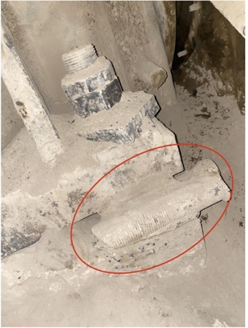 • Опорная рама левой подвенцовой шестерни имеет сквозные трещины. Рекомендован демонтаж и замена опорной плиты рамы