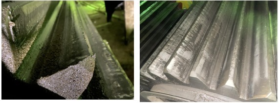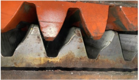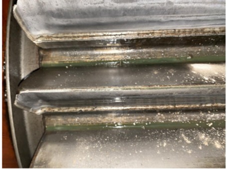 • Осевое и радиальное биения венцовой шестерни в пределах допустимого (2 мм). Однако, износ зубьев правой подвенцовой шестерни является критическим - рекомендована замена. Для продления срока службы венцовой пары, рекомендован переворот венцовой шестерни на 180º.